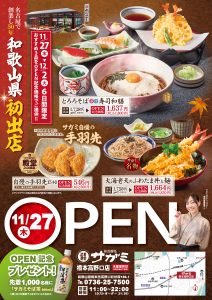 橋本市高野口町に本日(27日)オープンの「和食麺処サガミ」から、関陽菜子アナウンサーが生中継!