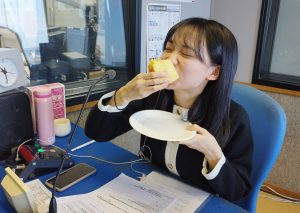 全力でほおばる関さん(^^)