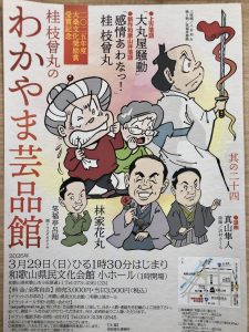 【出演】桂枝曾丸、林家花丸、笑福亭呂翔、真山隼人(浪曲)、(鳴り物)林家和女、笑福亭喬路、(浪曲師)沢村さくら
