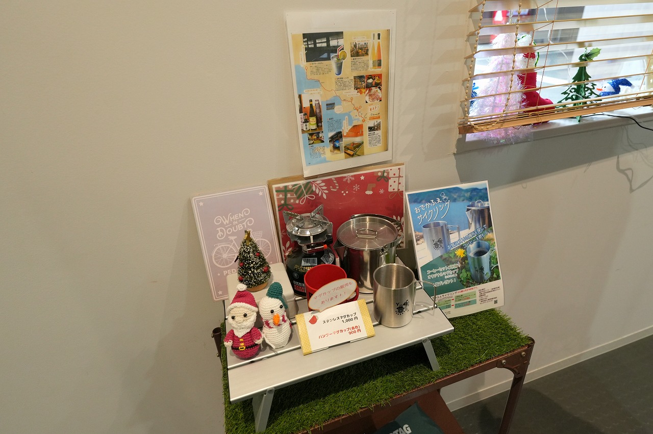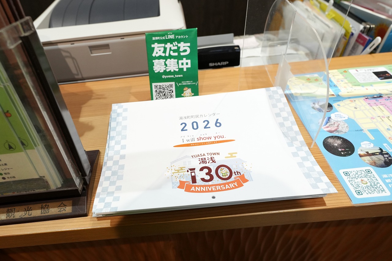 レンタルサイクルや、持ち運んでコーヒーなどを楽しめる「おでカフェセット」の貸出も行っているとか。公募で集めた写真を掲載した2026年のカレンダーを無料配布していた。この写真展が、2026年1月6日から2月6日まで湯浅えき蔵2階の町立図書館で行われるという。
