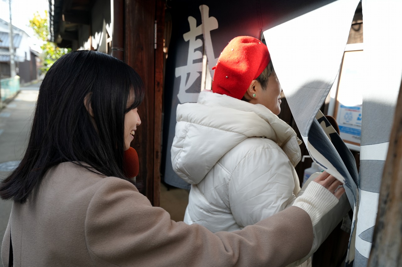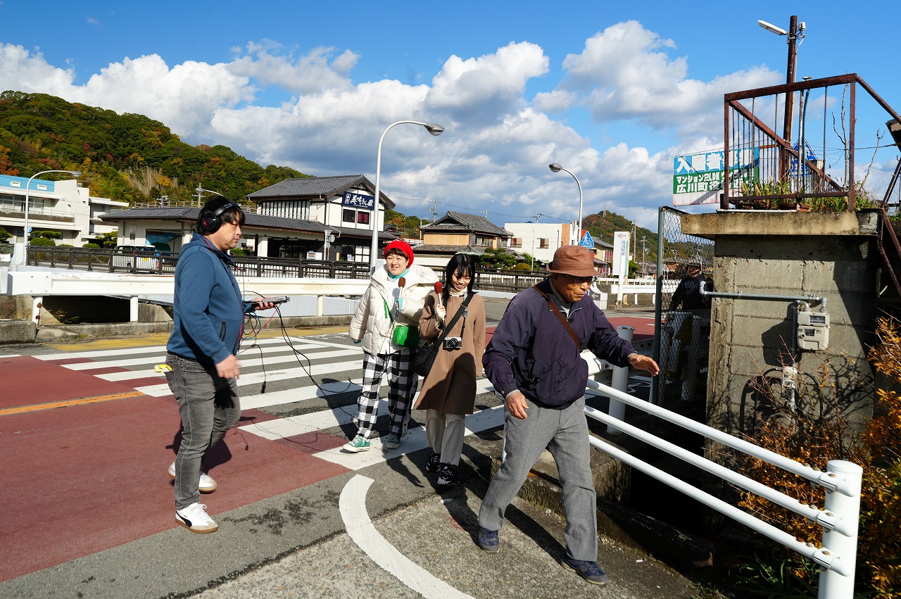 湯浅町のJR湯浅駅前からのスタート。旅人は、柳橋さやかさん(写真右)と関陽菜子アナウンサー。このコンビは、半年ぶり3回目。湯浅は2度目という関アナは、去年、和歌山放送への就職で、和歌山へ越してきたばかり。去年もこの風景だったと話したが、和歌山10年選手で何度も湯浅を訪ねている柳橋さんは、すっかり変わっていて驚いたとか。確かにきれいになった駅舎と駅前。湯浅駅は、旧駅舎の隣に新築された湯浅えき蔵に組み込まれ、旧駅舎はカフェを含んで復元リニューアルしている。駅前には駐車場や公園もある。話せば長く、役場の移転などもあるのだが、簡単に言うと、湯浅えき蔵の開業からは5年、旧湯浅駅舎復元オープンからは2年が経過している。そう、柳橋さんは、5年以上ぶりということのようだ。