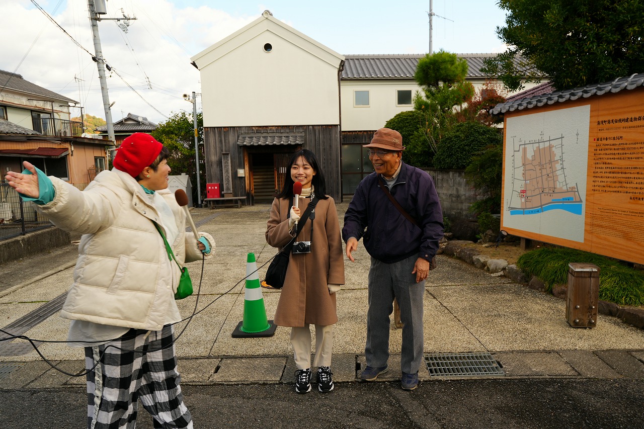 湯浅町は、国の重要伝統的建造物群保存地区(重伝建地区)があるほか、醤油発祥の地として日本遺産「最初の一滴」の認定もされている。今回は、そういった歴史的な建物が並ぶ町をガイドさんに案内してもらいながら歩いてみようという企画だ。番組でも何度目かの湯浅町だけど、醤油については案内してもらったけど、町並などについて案内してもらうのは初めてとなる。湯浅町観光協会が窓口になって、ガイドを予約できる。そんな訳で、湯浅ガイド協会の半邊宗五(はんべ・そうご)会長にご登場いただいた。番組としての制約はあるものの「できるだけいつも通り」をお願いした。