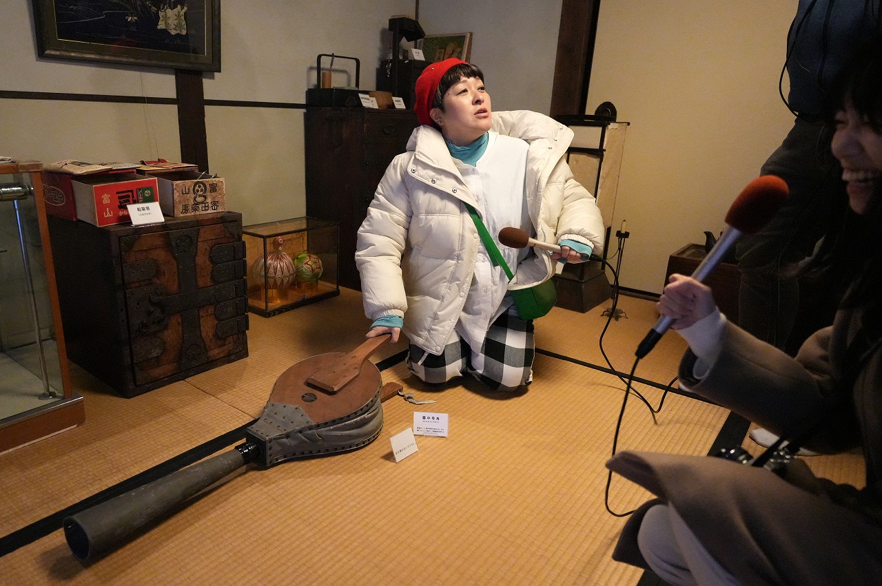 汽笛体験中の柳橋さん