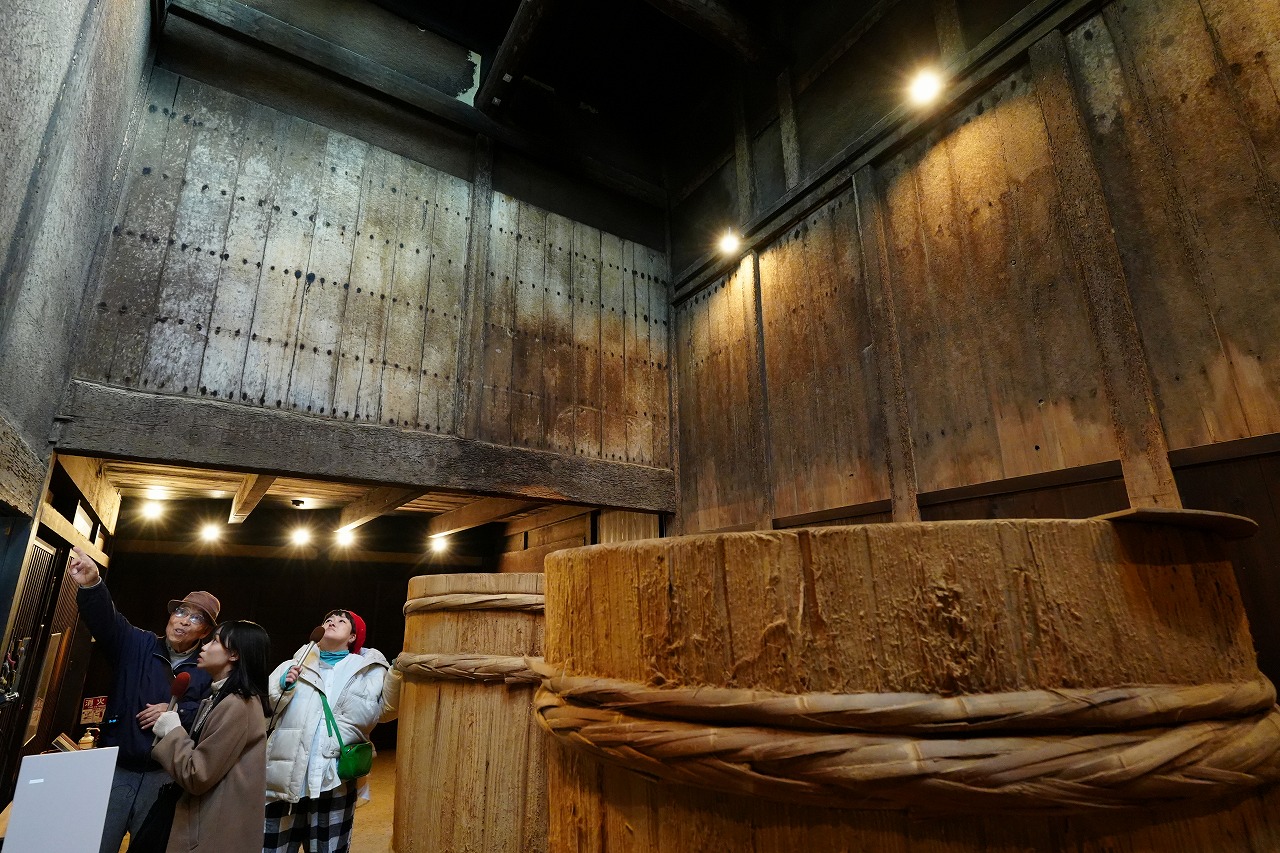 この通りは北通りというらしい。建物を見て、壁を見る。せいろミュージアムがある。半邊さんの話は、建物、醤油、町並み、暮らしなど、多岐にわたり、濃密。どんどん出てくる。