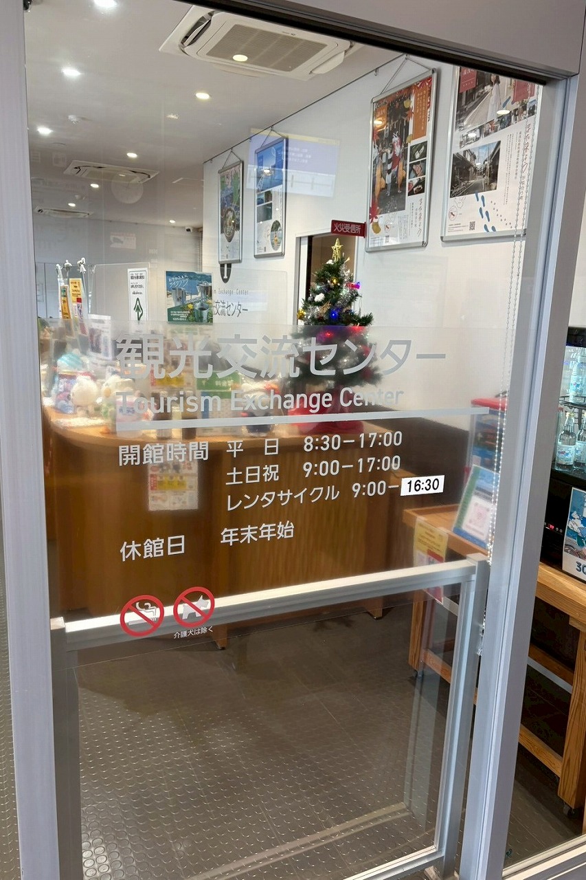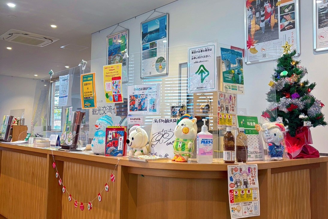 観光情報の総合インフォメーションでスタッフが常駐しているのがうれしい。カウンター上がにぎやかだ。