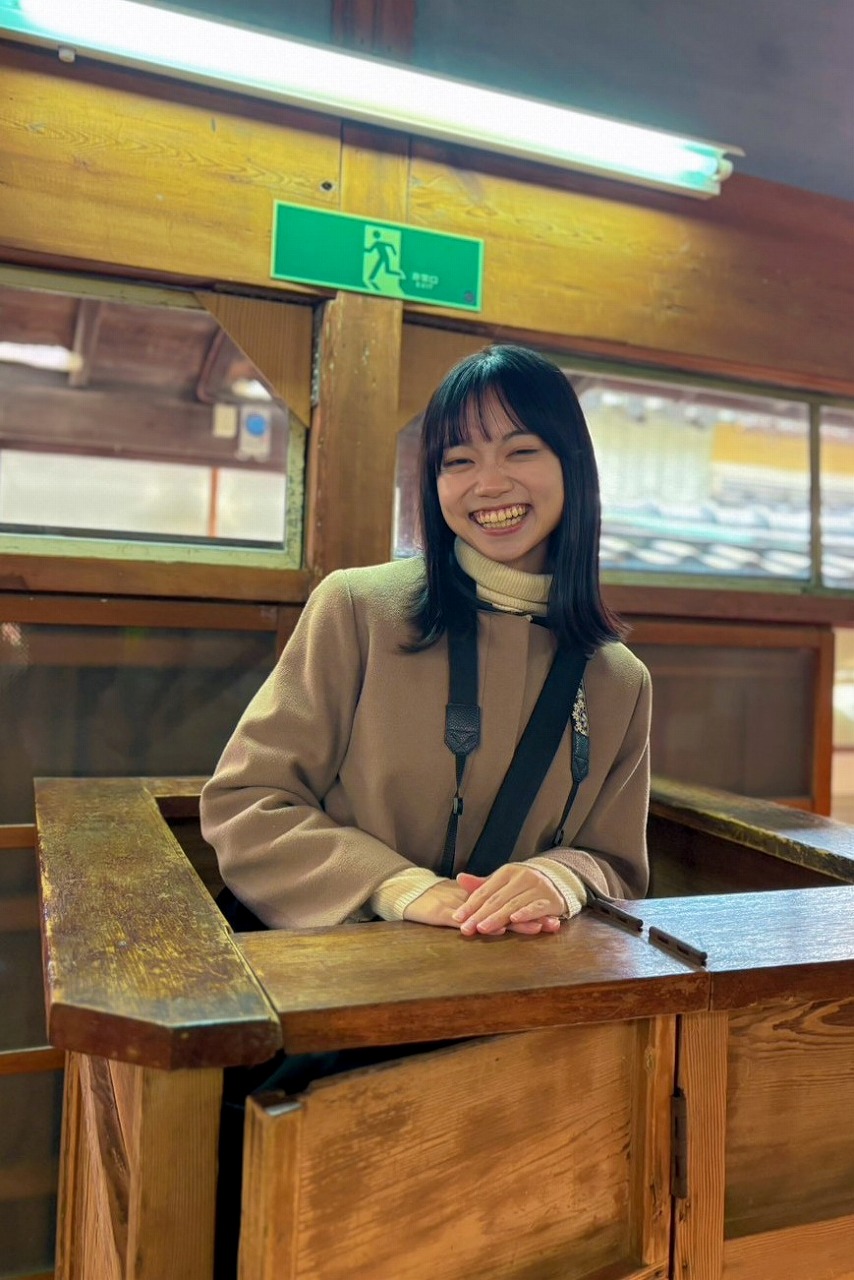 初めての番台体験が楽しそうな女子たち。手で押して鳴らす汽笛もあった。電話も時計も味わい深い。