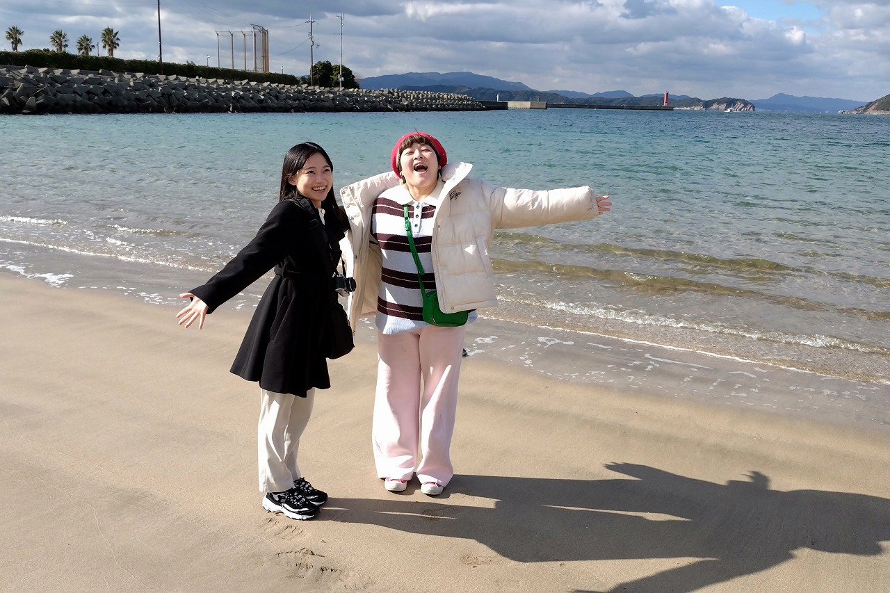 2026年最初の放送と言いつつ、最終週の放送のため、今月は末日となった。そう、今年もすでに1か月が経過したことになる。そんな1月の旅は、柳橋さやかさんと関陽菜子アナウンサーで、先月(去年ともいう)に続いて4回目。関アナは、ちょうど1年前に女子旅デビューしたばかりだが、今回で7回目。2か月に1度のペースになっていることに気がつき、驚くディレクター。それはさておき、冬の加太海水浴場に人影はない。だが、水のきれいさは季節に関係はない。温暖な和歌山なら、日差しがあれば、冬でも海辺の散策は心地よい。そして、女子2人は、スタート早々にお腹が空いたとか言い始めた・・・。