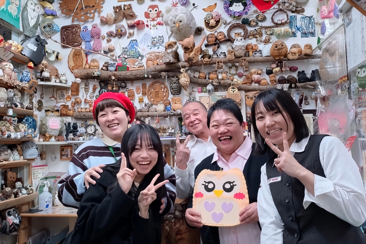 局長は、エリアベスこと、石橋由紀子(いしばし・ゆきこ)さん、ご主人が石橋彰彦(いしばし・あきひこ)さん、それに、長女の植松久美子(うえまつくみこ)さん。31年前、家族でドライブ中に見つけた傷ついたフクロウを保護し、手当てをしたことが全ての始まりという。そこから、良いことが起こり始め、色んな人がフクロウを置いていくようになり、福をもらいに来たり・・・が全国レベルの広がりを見せているという驚きの場所。そのストーリーと、それを話す3人のコンビネーションがすでに話芸の域に達している。笑って泣いて、フクロウを巡って、福の輪がひろがっている。郵便局だけに、このフレーズが正解かどうか分からないが、機会があれば、訪ねてみてほしい。