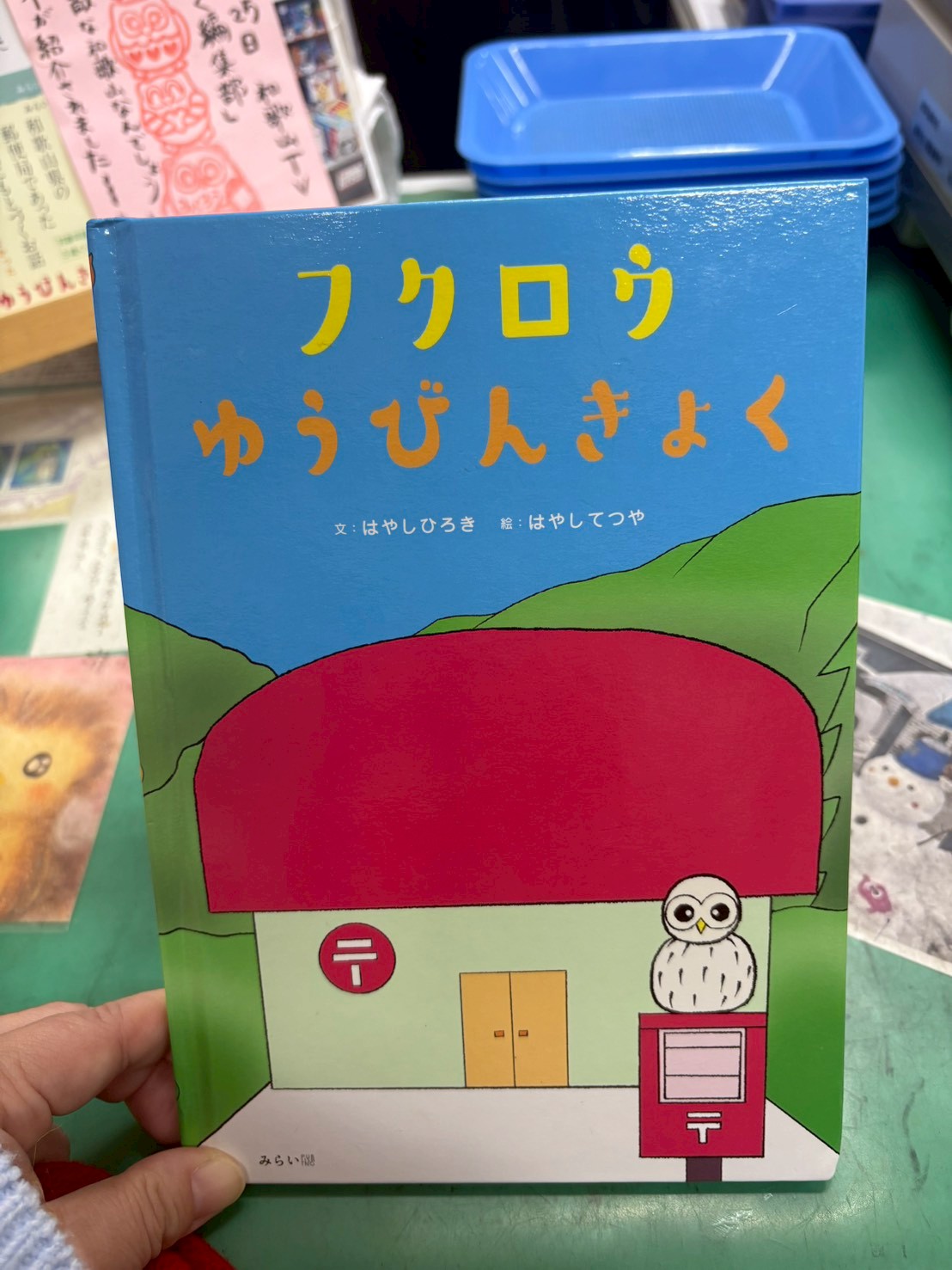 当初助けた助けたフクロウを初代とすると、今は3代目のフクロウが局内に鎮座していた。ゆきちゃんというメスで9歳だという。そして、この話は、「フクロウゆうびんきょく」という題名の絵本になり、市販されている。