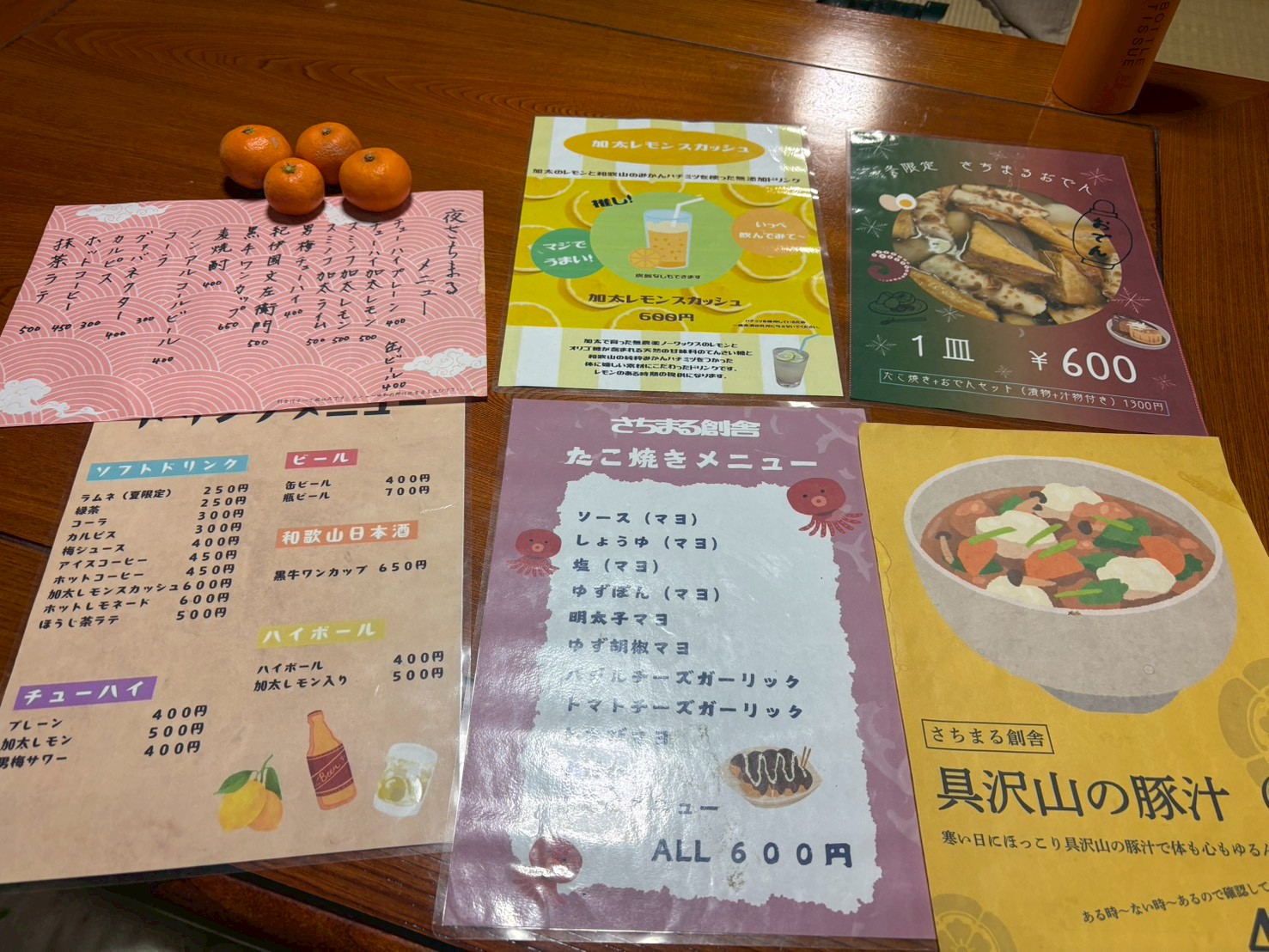 自慢のたこ焼きはもちろんいただく。メニューが多く、どれもおいしそう・・・、あれこれ頼んでみた。5皿も注文していた。